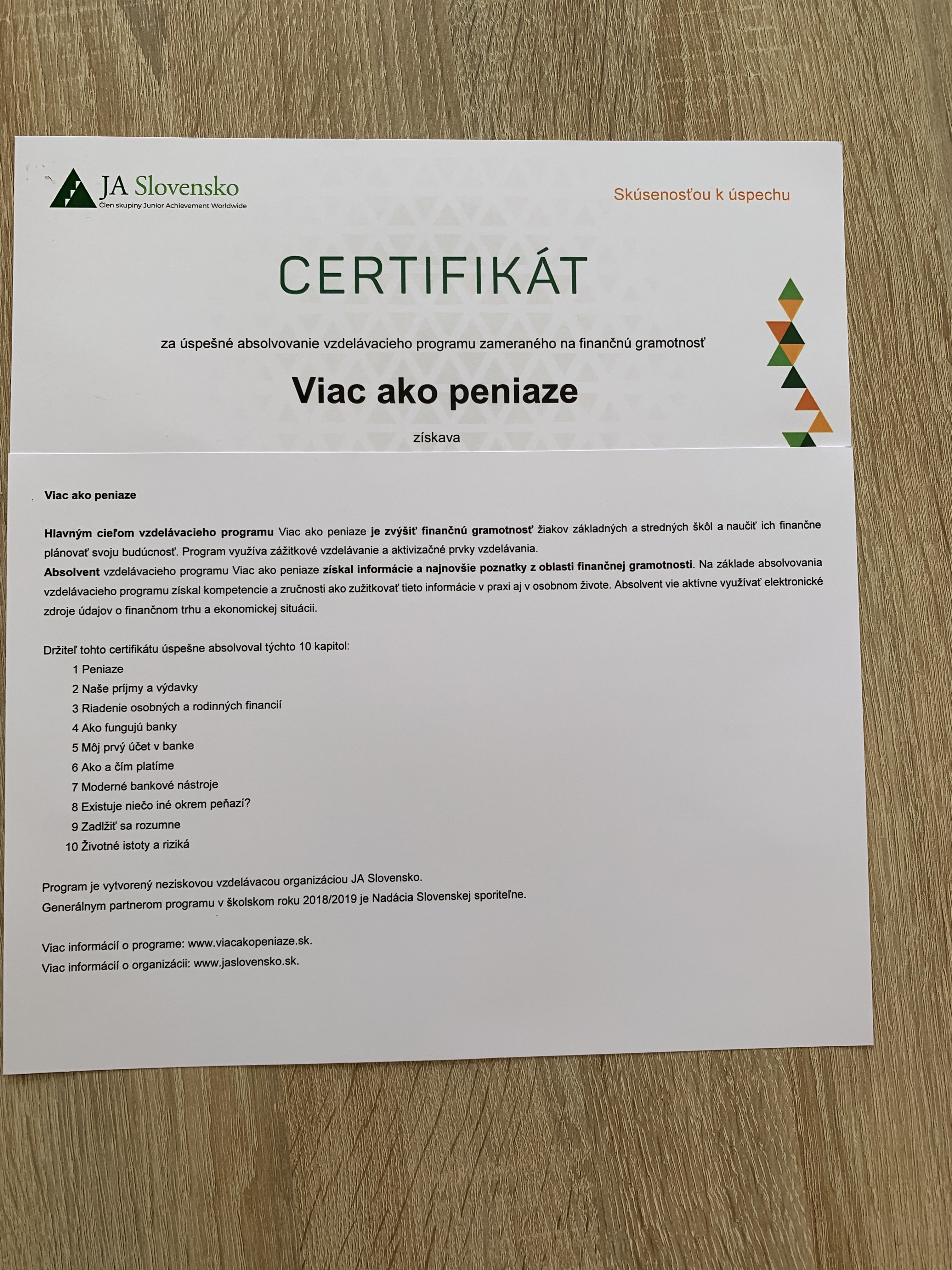 Ja Viac Ako Peniaze - Hotelova Akademia Presov : Voliteľný predmet viac ako peniaze, rozvíja u žiakov spôsobilosti, ktoré sú potrebné pre orientáciu.. Voliteľný predmet viac ako peniaze, rozvíja u žiakov spôsobilosti, ktoré sú potrebné pre orientáciu. Aj v tomto školskom roku sa naša škola úspešne zapojila do vyučovania programu viac ako peniaze. Vzdelávací program viac ako peniaze sme vytvorili v súlade s . Program je vytvorený neziskovou vzdelávacou organizáciou ja . Koncept finančnej gramotnosti sa presadil ako samostatná téma medzirezortnej politiky v dobe poslednej svetovej.